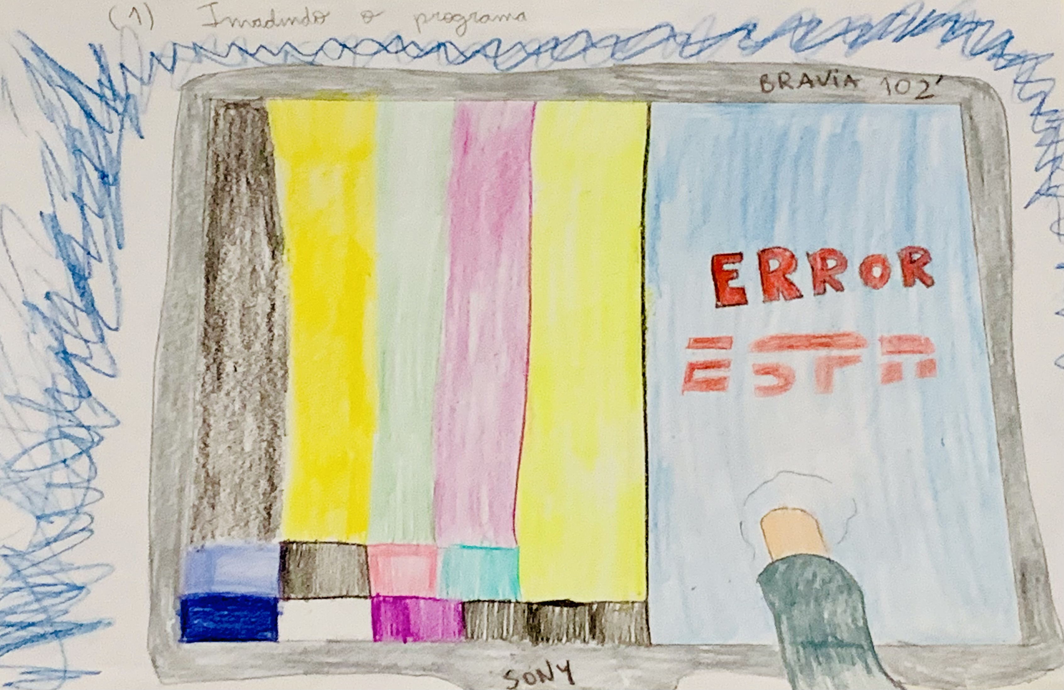 Ela ficou olhando e tentando entender , e só entendeu porque ela sabe o mistério e do horror que passava na televisão como : "Aviões e barcos desaparecendo "